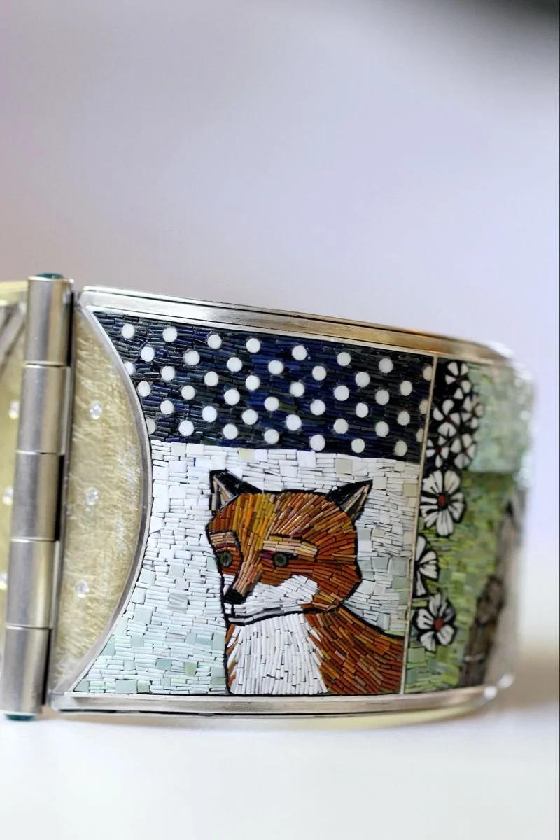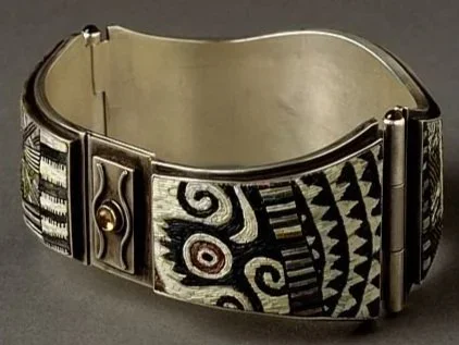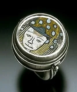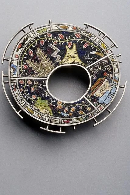 My style often involves mixed metals and moving parts. In addition to my unique, handmade wedding bands and engagement rings, I like to create art pieces that are fun and unexpected. I enjoy the mechanics of jewelry and the challenge of making intricate pieces that require planning, forethought, and experimentation. I am proud to say that my work can be found in the collections of several prestigious institutions, including the Swiss National Museum and the Renwick Gallery of the Smithsonian American Art Museum.