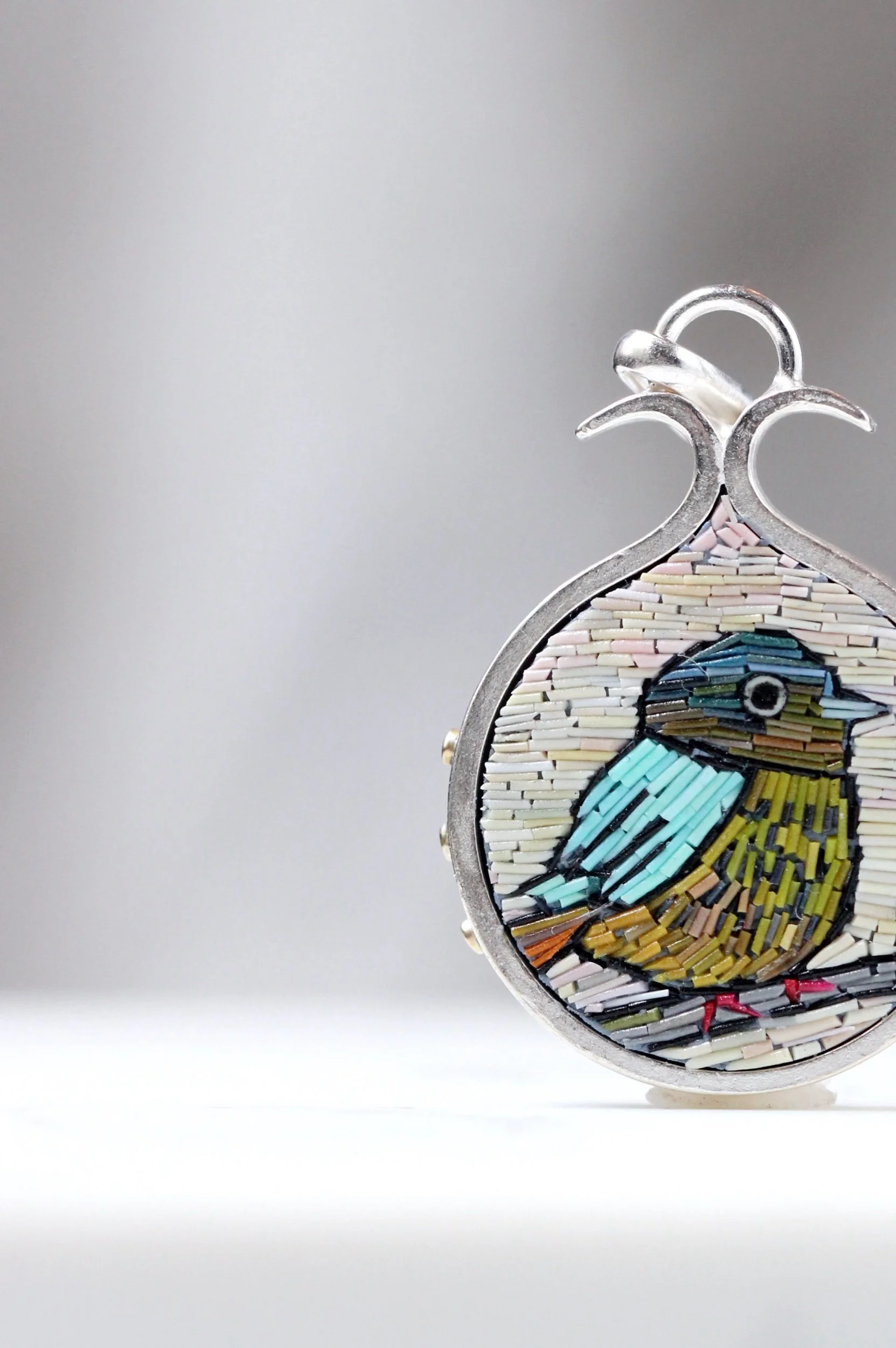 sterling silver bezel, sterling silver earring wire, polymer clay micromosaic